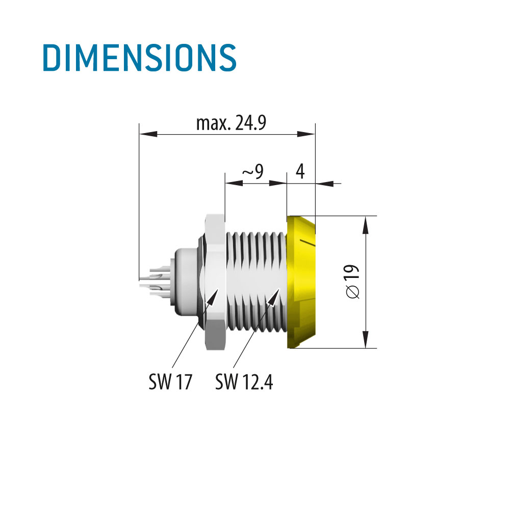 ODU MEDI-SNAP® Front panel mount receptacle, Size 1, IP50, 12 Contacts, 0° Key